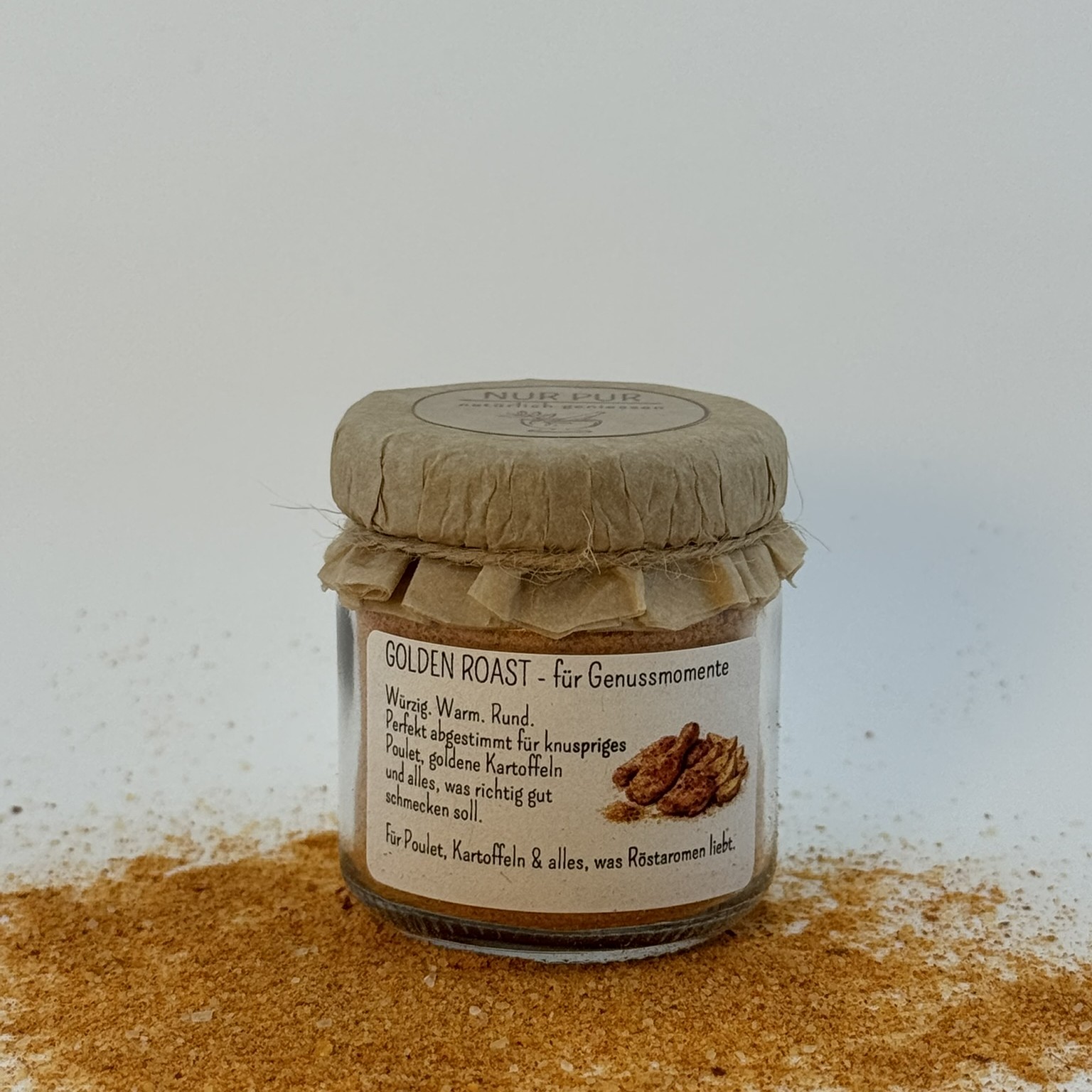 Paprika, Curry, Chili und ein Hauch Zucker sorgen für die perfekte Kruste. Ideal zum Marinieren, Braten oder Backen. Ein Hauch davon – und dein Ofengericht wird aussergewöhnlich. Hinweis: Trocken lagern, gut verschliessen. Zutaten: Meersalz, Paprika, Curry, Zucker, Chili.